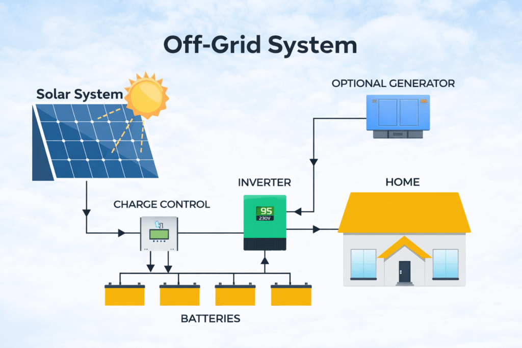 • Uses battery storage for backup power